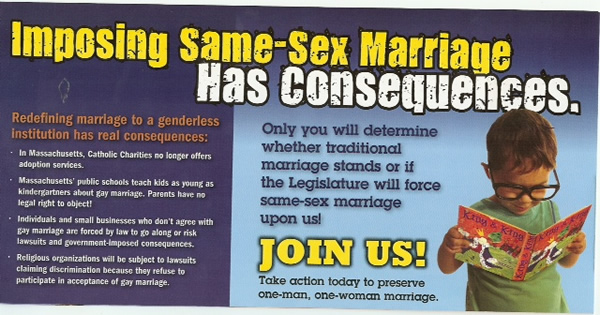 Clearly the NOM is following the same game plan it played in California and Maine, i.e. spooking people by claiming that "the gays are coming for their children."